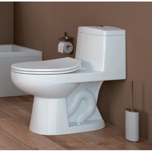 Floor mounted wc one piece with siphon and seat cover SC3, product by Saudi Ceramics, features an advanced drainage system, and can be easily cleaned using regular household cleaners, available in different shapes and sizes with the highest quality and best prices.