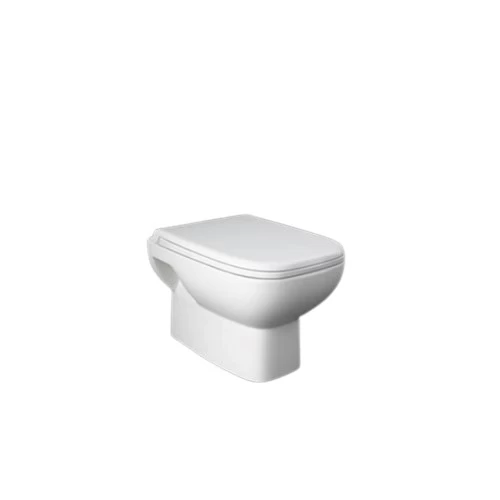 Practical wall-hung toilet, made of high-quality ceramic. Features a UF soft-close compressed plastic lid and a powerful flush system for fast, efficient water drainage. Its raised design allows easy floor cleaning and creates a sleek modern bathroom look. Includes plastic and rust-resistant stainless steel accessories. Ideal for compact and modern spaces. Available in multiple sizes.