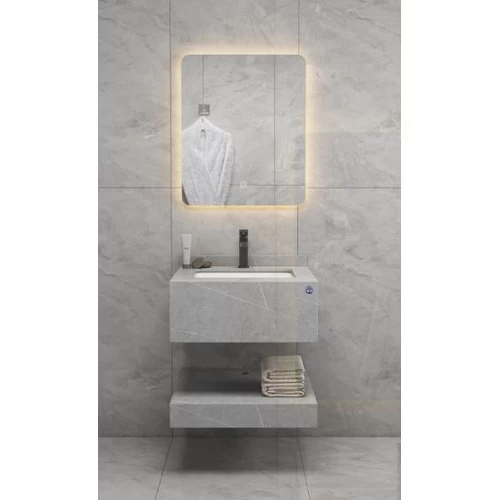 Artificial Marble Normal Basin with LED Mirror Size 60 cm, Leaden With White Veins Color