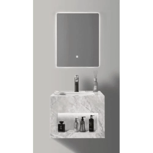 Artificial marble sink single basins with 3 color LED mirrors, marbled gray color, size 50 cm, It also features an attractive and elegant appearance and provides a luxurious and modern look to the interior decor