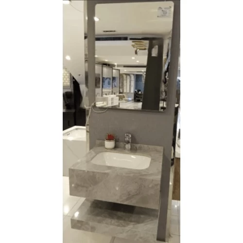 Artificial marble sink, with single ceramic basins and LED mirror, made of high quality materials, making it resistant to scratches, stains and cracks. It also features two basins instead of one, making it ideal for places where more than one person shares the same time without crowding, such as family bathrooms or guest bathrooms. It also features an attractive and elegant appearance and provides a luxurious and modern look to the interior decor. It is also available in different shapes, sizes and colors to suit all tastes and decorative styles.
