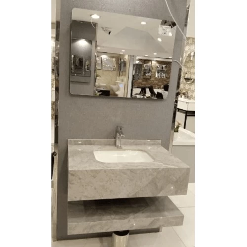 Artificial marble sink, with single ceramic basins and LED mirror, made of high quality materials, making it resistant to scratches, stains and cracks. It also features two basins instead of one, making it ideal for places where more than one person shares the same time without crowding, such as family bathrooms or guest bathrooms. It also features an attractive and elegant appearance and provides a luxurious and modern look to the interior decor. It is also available in different shapes, sizes and colors to suit all tastes and decorative styles.