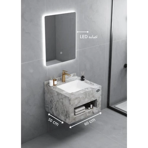 Artificial marble washbasin, with ceramic basin and LED mirror, made of high quality materials, making it resistant to scratches, stains and cracks. It features an attractive and elegant appearance and provides a luxurious and modern look to any bathroom decor. It is also available in different shapes, sizes and colors to suit all tastes and decorative styles