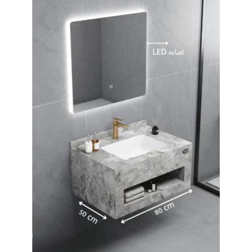 Artificial marble washbasin, with ceramic basin and LED mirror, made of high quality materials, making it resistant to scratches, stains and cracks. It features an attractive and elegant appearance and provides a luxurious and modern look to any bathroom decor. It is also available in different shapes, sizes and colors to suit all tastes and decorative styles