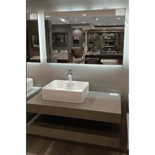 Artificial marble sink, with single ceramic basins and LED mirror, made of high quality materials, making it resistant to scratches, stains and cracks. It also features two basins instead of one, making it ideal for places where more than one person shares the same time without crowding, such as family bathrooms or guest bathrooms. It also features an attractive and elegant appearance and provides a luxurious and modern look to the interior decor. It is also available in different shapes, sizes and colors to suit all tastes and decorative styles.