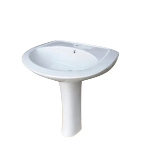 Ceramic wash basin with full base, made of high quality ceramic, resistant to water and moisture, easy to clean, durable, strong, scratch and stain resistant, ensuring a long life for the basin and a modern design to add an elegant look, available in different shapes and sizes with the highest quality and best prices.