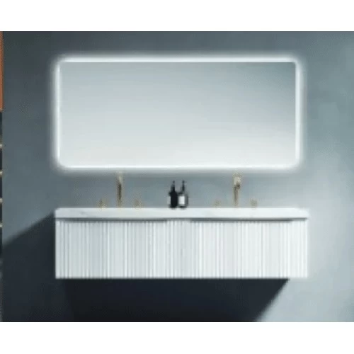 Ceramic marble top bathroom washbasin double bowl, size 50×160 cm, white color with Wooden Cabinet, and mirrors with LED adds a touch of elegance and matches the decor, and gives a luxurious look to the place