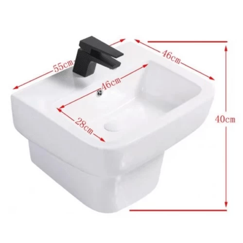 Ceramic wall mounted hand washbasin, square shape, white color, size 55x46x40 cm, it features by durable, strong, scratch and stain resistant, ensuring a long life for the basin and a modern design to add an elegant look