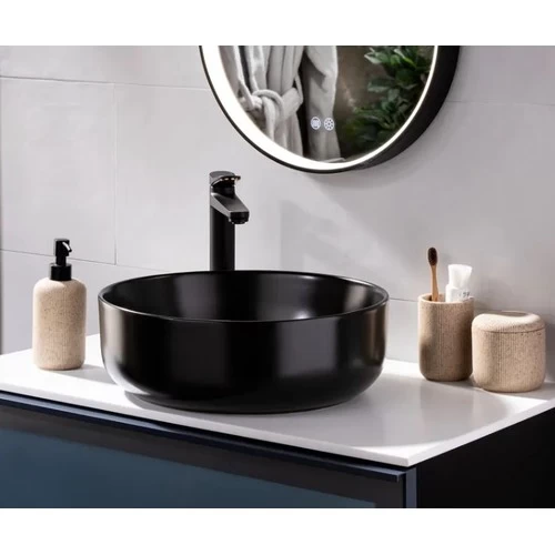 Countertop washbasin, made of high quality porcelain, which is characterized by durability, resistance to scratches and stains, and the ability to withstand daily use, ideal for any bathroom that seeks elegance and practicality at the same time, has a modern and contemporary look and design to suit a wide range of decor options, available in various shapes, sizes and colors to suit all tastes.