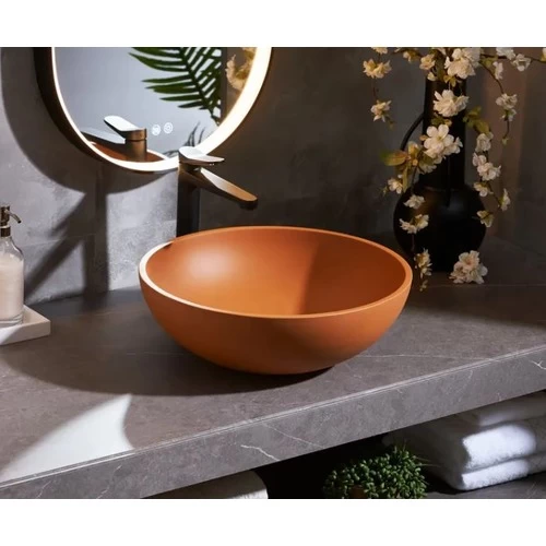 Countertop washbasin, made of high quality porcelain, which is characterized by durability, resistance to scratches and stains, and the ability to withstand daily use, ideal for any bathroom that seeks elegance and practicality at the same time, has a modern and contemporary look and design to suit a wide range of decor options, available in various shapes, sizes and colors to suit all tastes.