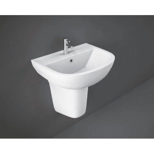 Half pedestal washbasin, produced by RAK Ceramics Factory, made of high quality materials, resistant to water and moisture, easy to clean, durable, strong, scratch and stain resistant, ensuring a long life for the basin and a modern design to add an elegant look, available in different shapes and sizes with the highest quality and best prices.