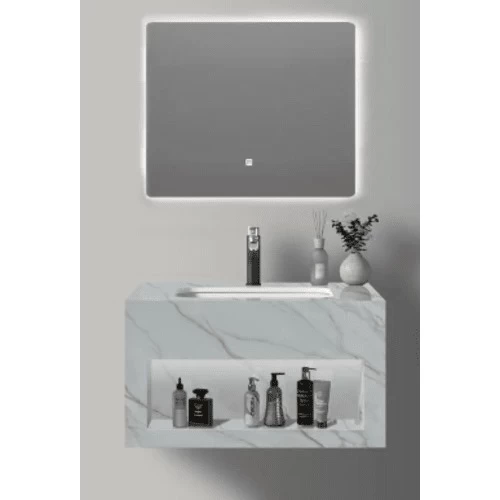 Artificial marble sink, with two ceramic basins and LED mirror, made of high quality materials, making it resistant to scratches, stains and cracks. It also features two basins instead of one, making it ideal for places where more than one person shares the same time without crowding, such as family bathrooms or guest bathrooms. It also features an attractive and elegant appearance and provides a luxurious and modern look to the interior decor. It is also available in different shapes, sizes and colors to suit all tastes and decorative styles.