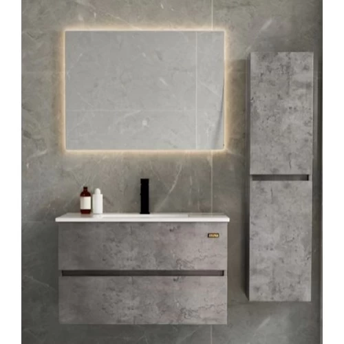 Modern Wooden Washbasin With Ceramic basin LED mirrors and Pharmacy, Size 80×48×50 cm, Marble Grey Color