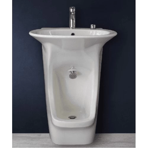 Washbasin with complete base, produced by the Saudi Ceramics factory, made of high quality materials, characterized by a modern appearance and ease of cleaning, suitable for home and commercial use thanks to its high quality and durability, available in different shapes and sizes with the highest quality and best prices.