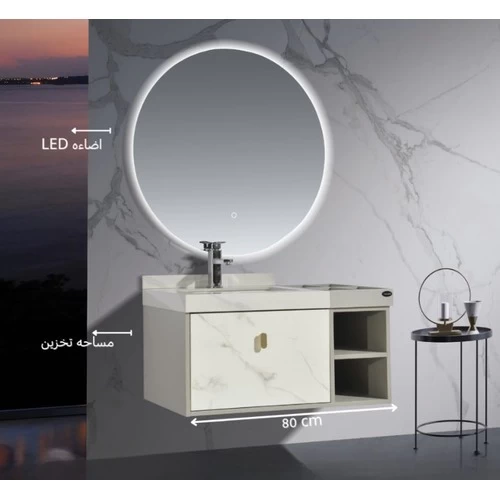 Ceramic basin decor washbasin and LED mirrors and wardrobe, and gives a luxurious look to the place, made of treated wood to resist water and moisture, in addition to the presence of LED mirrors, ideal for any bathroom that seeks elegance and practicality at the same time, provides additional space to place daily items in an organized and tidy manner, available in different shapes and sizes with the highest quality and best prices