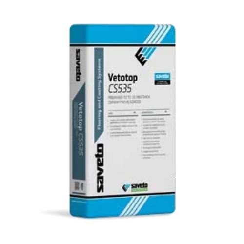 Premixed Mortar Vetotop CS535 [Saveto] Leveling of Flooring, Thickness 10 to 30 mm Size 50 KG, Gray powder Color, Single component consisting of hydraulic binders, silica sand, specific aggregate, additives and fibers, excellent workability, shrinkage compensated, easy to apply.