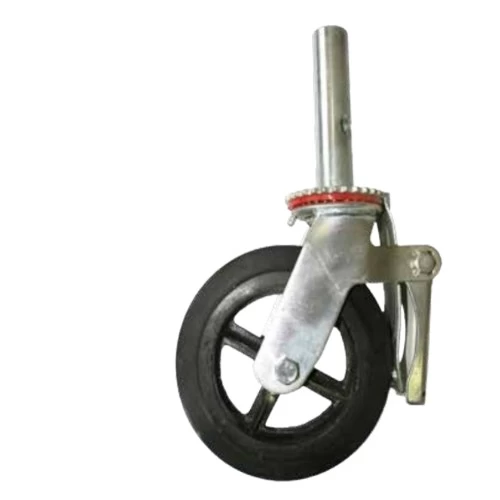 Caster wheel by JAECO Company, made of high-quality materials, is designed for heavy-duty use in the Cuplock scaffolding system. Equipped with a twist lock for stability, it ensures smooth mobility and movement on construction sites, making it ideal for projects requiring flexibility and secure positioning.