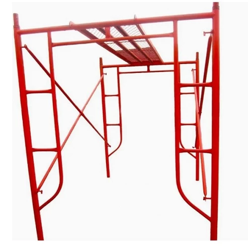 Steel scaffolding made of rigid welded frames, providing high support and stability in construction and maintenance work, it consists of two verticals and two horizontals, enhancing load-bearing capacity and ensuring a safe and efficient working environment, designed for reliable performance in various construction applications.