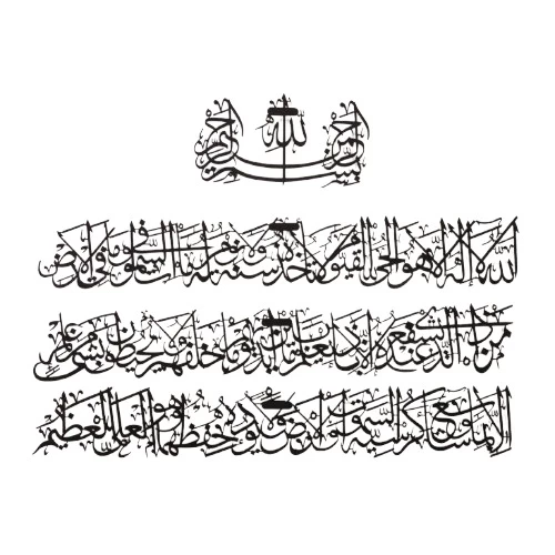 Ayatul kursi (4 Piece) metal Islamic wall art, black color, size 99× 64 cm, with high-quality electrostatic coating, provide exceptional resistance to corrosion and bacteria, making them ideal for use in public spaces and homes alike.