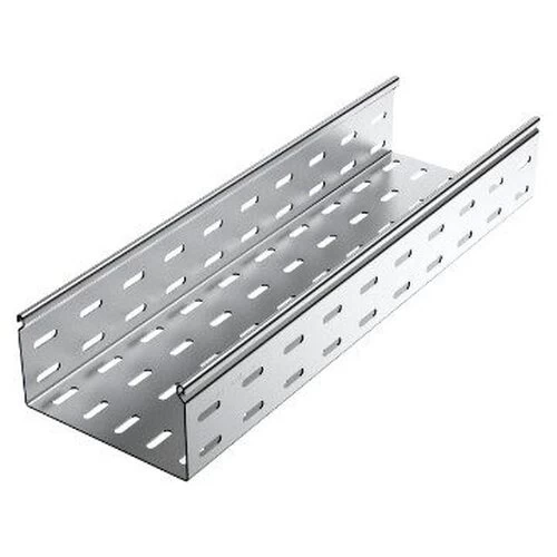 Perforated straight electrical cable tray with an round flange, manufactured from hot dip galvanized steel (HDG). 2.0mm thickness, 75mm height, 900mm width. produced by BAHRA company. reduce the risk of overheating, and extend their operational lifespan.