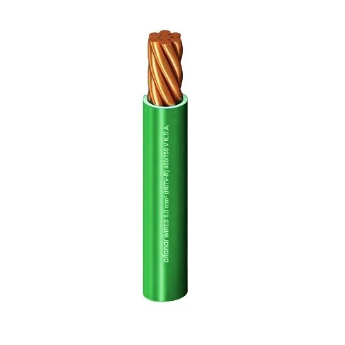 Heat Resistant Single Core Stranded Copper Cable, PVC 90°C insulated for building wires, Diameter 12.5 mm Colour Green, Brand Al-Fanar, Designed and tested in accordance with the latest UL, BS or IEC standards. Manufactured from electrolytic grade 99.97% pure copper. Gasoline and oil resistant.