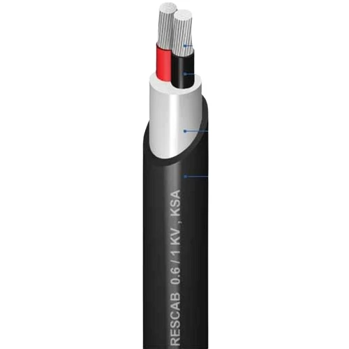 Stranded aluminium power cable (AL/PVC/PVC), 2 core, 35mm2 size conductor, 0.6/1kV, produced by Red Sea Cables (RESCAB) company, PVC layer forms excellent insulation which prevents harmful UV rays from damaging the cable, and effective choice for power transmission.