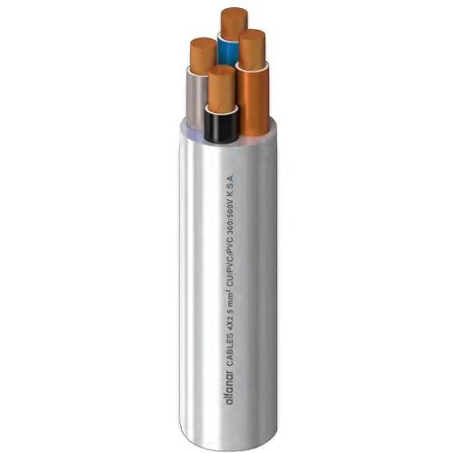 Electric cable four core 1 mm2 , flexible copper, 300/500V, the polyvinyl chloride (PVC) insulation material provides excellent electrical insulation, phase core color (brown, black, gray, blue), produced by Alfanar Company.
