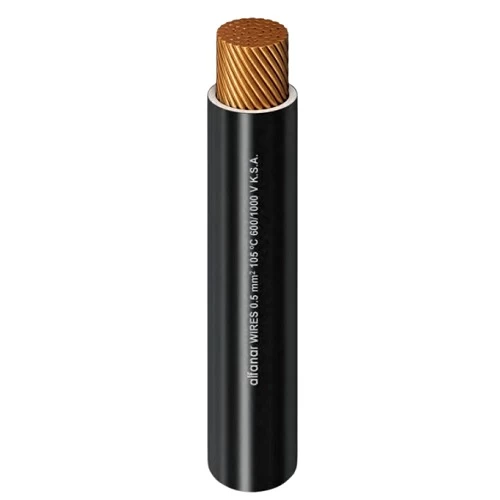 Flexible copper electrical wire (CU/PVC), 50 mm2 cross-sectional area, 600/1000 volts, Available in different colors and sizes with the highest quality and best prices, manufactured by Alfanar Company.