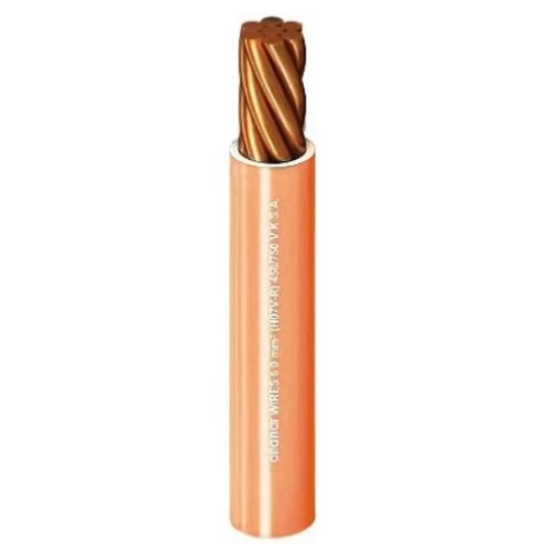 Stranded copper electrical heat resistant wire (CU/PVC), manufactured by Alfanar, 6 mm2 cross-sectional area, number of wires 7, phase core color orange, insulated with polyvinyl chloride (PVC 90 ºC), as it is forms excellent insulation around the conductor to prevent leakage of electric current.