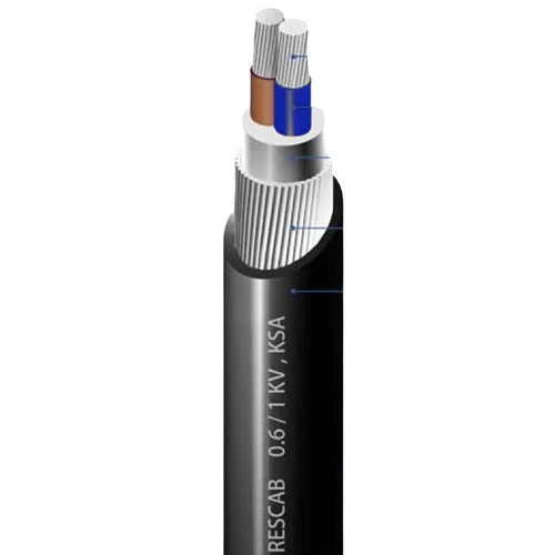 Stranded aluminium power cable (AL/XLPE/PVC), two core, Produced by Red Sea Cables (RESCAB) Company. Insulated with XLPE (cross-linked polyethylene), which offers an exceptional combination of properties that make it the ideal choice for a wide range of power and energy transmission applications due to its excellent electrical, thermal, and mechanical properties, where it is characterized by its ability to withstand high temperatures up to 90ยฐC for extended periods without compromising performance. It also offers excellent resistance to moisture, corrosion, and chemicals, ensuring long-term safety of use. Additionally, sheathed with PVC (polyvinyl chloride) material, which provides extra protection for the cable against shocks, abrasion, corrosion, and prevents harmful UV rays from damaging the cable. This makes it suitable for both indoor and outdoor applications. Available in different shapes, sizes and conductor ratings to meet diverse application requirements.