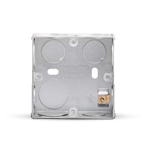 Steel Switch Box With Brass Earth Terminal Size 7x7 cm, Thickness 1.1 mm, Depth 4.7 cm | Spectra