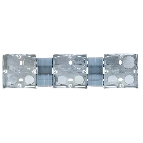 Triple Steel Electrical Switch Box produced by Alfanar Company, made of high-quality galvanized steel, ensuring high rigidity and durability, the galvanization (zinc) layer protects the steel from rust and corrosion caused by humidity and harsh weather conditions, The box also provides good protection for wires or electrical components from dirt, dust, and moisture. and offers enough space to store wires in an organized and safe manner, used for connecting electrical wires inside the wall and mounting switches and outlets, easy to install and remove using the provided screws, features smooth edges that prevent damage to pipes and wires or injury to the user, available in a variety of sizes with the highest quality and best prices