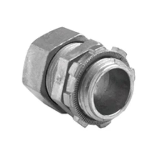 Buy Zinc Die Cast EMT Connector Compression Type, Silver Color, Size 3/4 Inch, Height 1.260 Inch, ITCC Brand, Made of die-cast zinc to connect EMT tubing to electrical enclosures, screws are used to connect EMT tubing to bolts, suitable for use in domestic, commercial and industrial electrical installations.