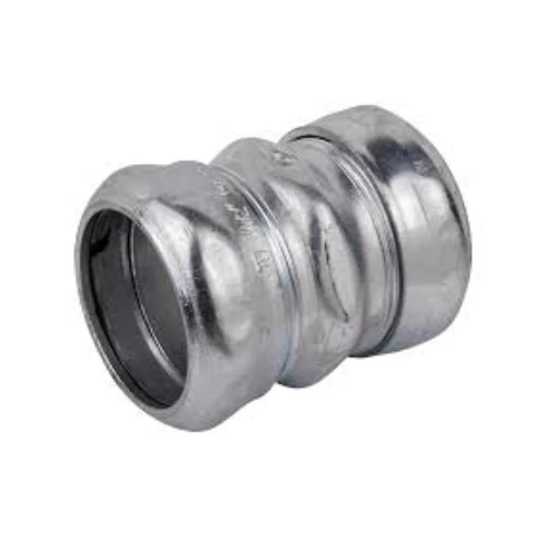 Steel EMT Coupling Compression Type, ITCC Brand. made of steel to connect EMT tubing to each other to create a path for electrical connections, a screw is used to connect EMT tubing to each other, used in residential, commercial and industrial electrical installations.