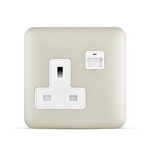 13 Amp 1 Gang Socket with USB 2.1A, Champagne Color, 7x7cm | SPECTRA