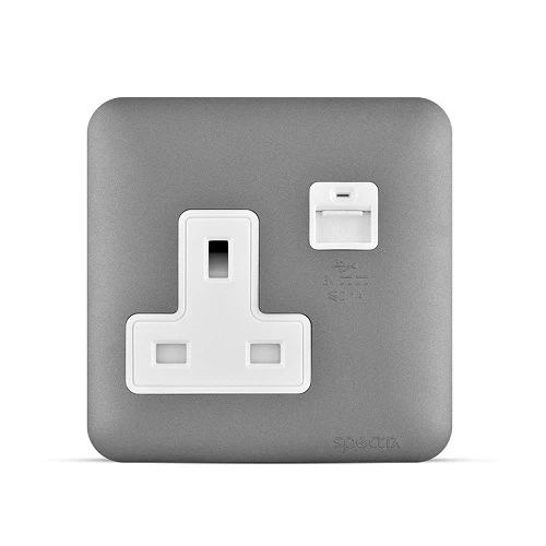 13 Amp 1 Gang Socket with USB 2.1A, Dark Silver Color, 7x7cm | SPECTRA