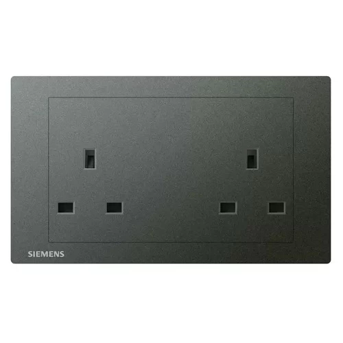 Socket 13A twin gang, dark gray color, size 86×146×30 mm, 250V, Siemens Brand (Delta Relfa series). Crafted from high-quality materials that withstand high temperatures, corrosion, and chemicals to ensure safe and efficient electrical conductivity.
