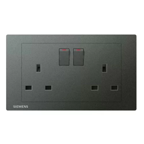 Switched socket twin gang, dark gray color, size 86x146x30 mm, 250V, Siemens Brand (Delta Relfa series). Crafted from high-quality materials that withstand high temperatures, corrosion, and chemicals to ensure safe and efficient electrical conductivity.