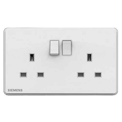 Switched socket twin gang with indicator Siemens Brand (Delta Seata). Crafted from high-quality materials that withstand high temperatures, corrosion, and chemicals to ensure safe and efficient electrical conductivity. Available in various designs and colors to suit different applications and styles.