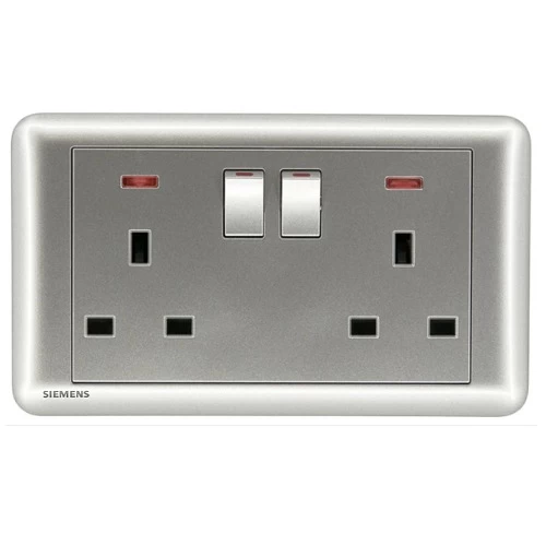 Switched socket twin gang with neon indicator Siemens Brand (Delta Seata). Crafted from high-quality materials that withstand high temperatures, corrosion, and chemicals to ensure safe and efficient electrical conductivity. Available in various designs and colors to suit different applications and styles.