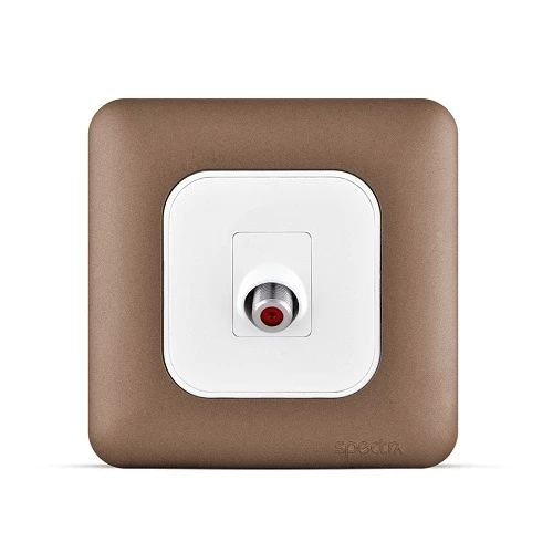 Angular Sattelite Socket, Copper Color, 7x7cm, manufactured by ACFA Modern (SPECTRA), this plug features a thermal protection mechanism that automatically cuts off the power when it overheats due to an electrical overload, thus preventing damage to connected devices.
