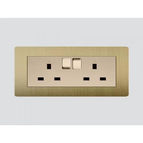 The double triple socket with a switch in golden color is made of high-quality materials for safety and reliability. It features a sleek, modern design that adds a luxurious touch to any interior space. It provides dependable connections for electrical devices and allows you to control power with the built-in switch. Perfect for use in homes and offices. Available in different colors to suit all preferences.