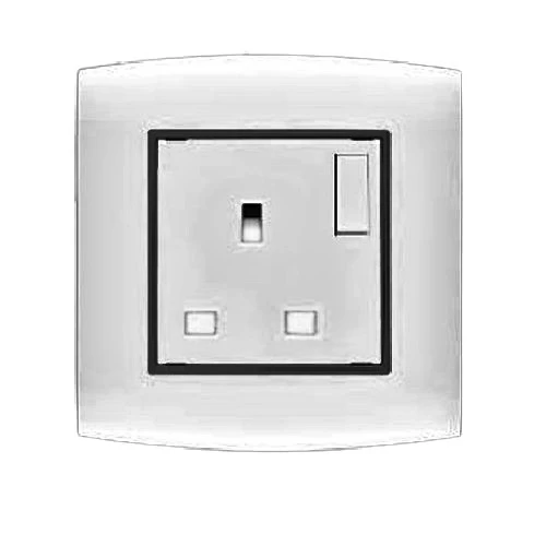 Electical switch socket with switch 2 way 13 AMP Omnia Size 7×7 cm Color Silver with Black Ring Brand AL-FANAR , they are equipped with a metallic frame for durability. They are Quality Mark-stamped and come with a product replacement warranty.