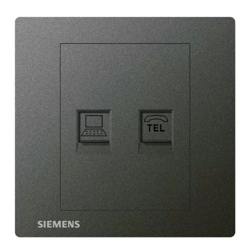 RJ11 Telephone +RJ45- Internet/Data -Cat6 Socket, Dark Gary Color, size 86x86mm, Siemens (Delta Relfa) Brand. Made from high-quality materials that withstand high temperatures, corrosion, and chemicals, ensuring safe and efficient electrical connectivity. Ideal for use in homes, offices, schools, and industrial facilities.