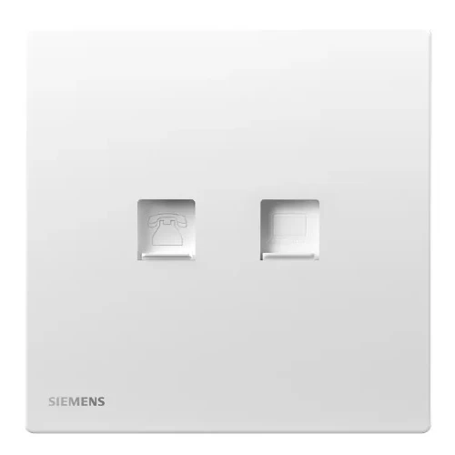 RJ11 Telephone +RJ45 Internet/Data Cat6 socket, size 86x86mm, White color, Siemens (Delta Peleus) brand. Made from high-quality materials that withstand high temperatures, corrosion, and chemicals, ensuring safe and efficient electrical connectivity. Ideal for use in homes, hotels, offices, and modern residential buildings.