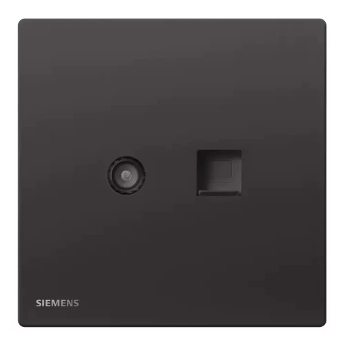 TV+RJ45 Internet/Data Cat6 socket, size 86x86mm, Black color, Siemens (Delta Peleus) brand. Made from high-quality materials that withstand high temperatures, corrosion, and chemicals, ensuring safe and efficient electrical connectivity. Ideal for use in homes, hotels, offices, and modern residential buildings.