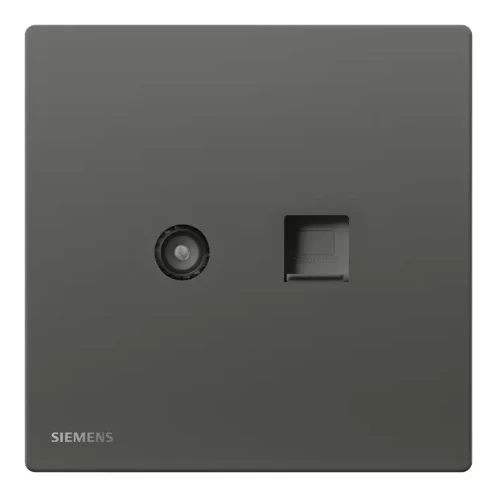 TV+RJ45 Internet/Data Cat6 socket, size 86x86mm, Dark Silver color, Siemens (Delta Peleus) brand. Made from high-quality materials that withstand high temperatures, corrosion, and chemicals, ensuring safe and efficient electrical connectivity. Ideal for use in homes, hotels, offices, and modern residential buildings.