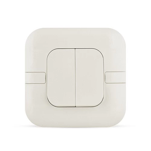 Electrical light switch wide rocker (PERLA), 2 gang 2 way, 10 Amp, size 7x7 cm, 250 volt, white color, It is resistant to breakage, oil and heat during operation, manufactured by ACFA Modern (SPECTRA) according to Saudi and British standards.
