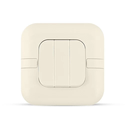 Light switch 3 gang wide rocker, 10 Amp, beige, 7x7cm Size, 250 volts, it is highly resistant to fire, breakage, corrosion and oils, manufactured by ACFA Modern (SPECTRA) according to Saudi and British standards.