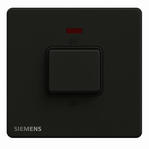 45A 1 Gang Double Pole Switch with Neon Indicator, Black, Size 86x86mm, 250V, Siemens (Delta Peleus)